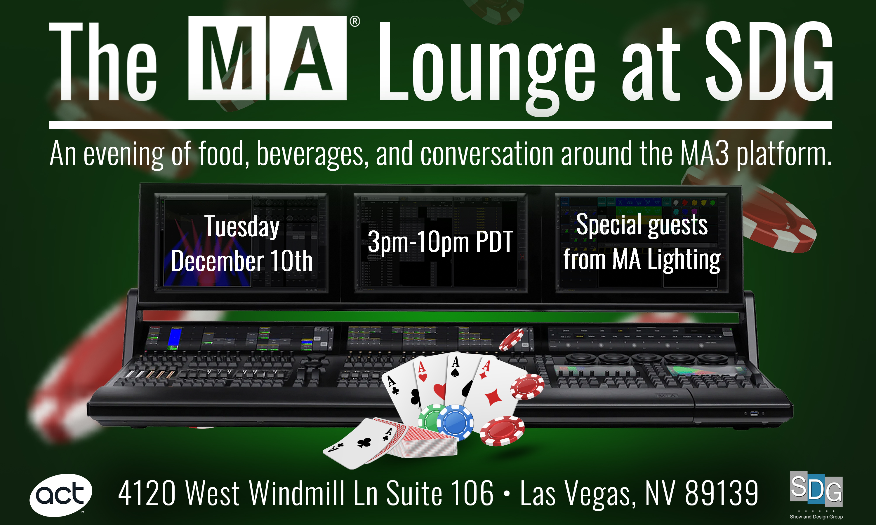December 8th through the 10th, ACT Entertainment will be exhibiting at the Las Vegas Convention Center in booth 2808. Come see the latest technologies from MA Lighting, Ayrton, Green Hippo, zactrack, Visual Productions, PK Sound, ProCo, AC Power Distribution and MDG Fog.